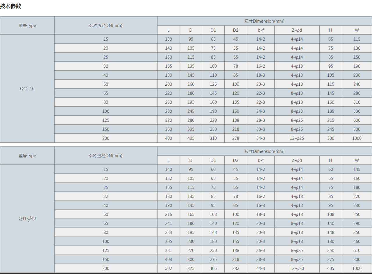 型號(hào)Type 公稱(chēng)通徑DN(mm) 尺寸Dimension(mm)