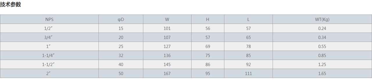 NPS φD W H L WT(Kg)