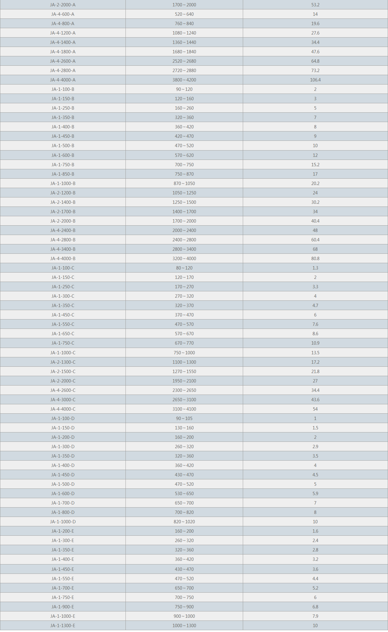 【產(chǎn)品型號(hào)】:JA-1-100~JA-9-10800