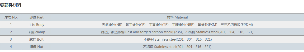 | 2 | 卡箍 clamp | 鑄造、鍛造碳鋼 Cast and forged carbon steel(Q235)、不銹鋼 Stainless steel(201、304、316、321) |